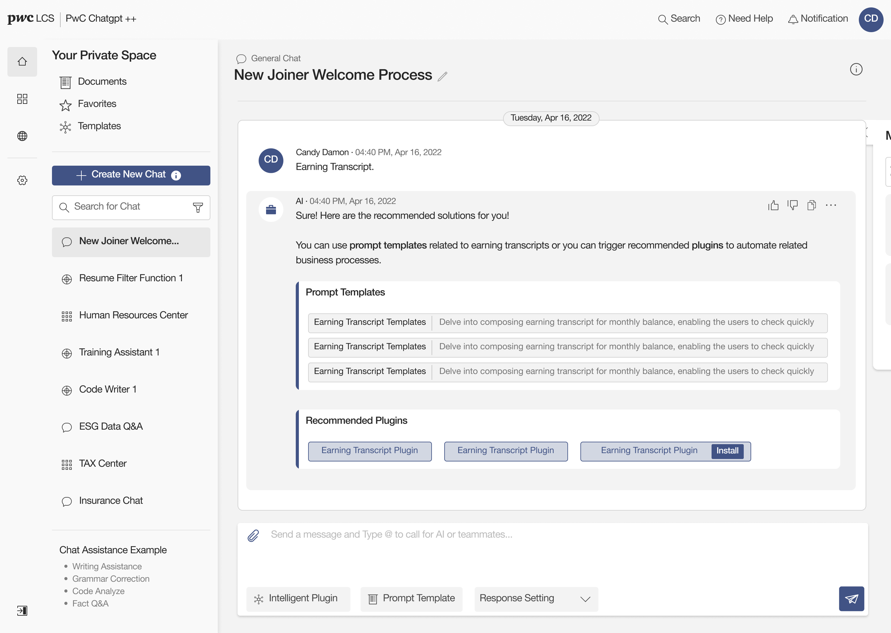 Designed a unified enterprise AI platform that brought chat, templates, plugins, team collaboration, and workspace customization into one seamless product experience.