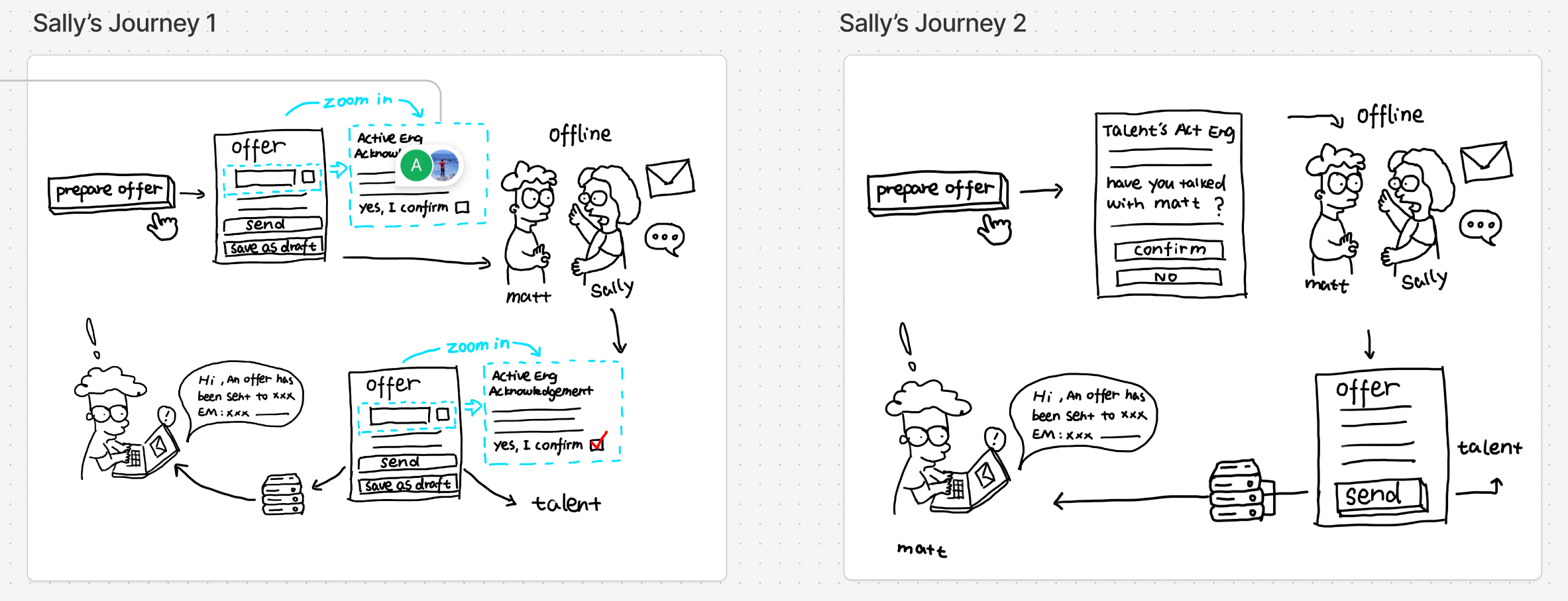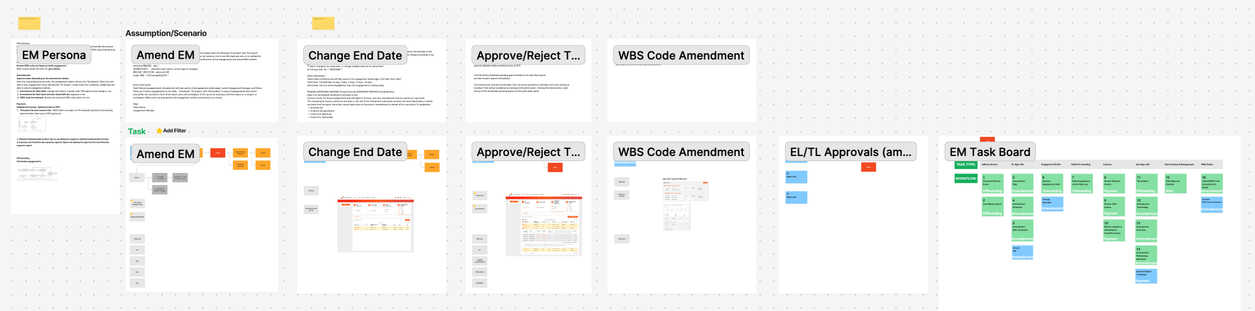 Once we established the four core directions—approvals, expiring engagements, onboarding, and role assignments—we knew that each would require a detailed, user-centered workflow. Rather than jumping straight into wireframes or UI design, we took a deeper, more analytical approach to understand how users actually worked day-to-day.